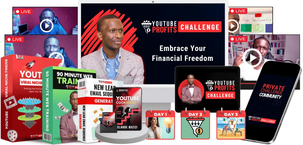 FREE! Access to our private 'YouTube Profits' Challenge Community, where you can share wins, ask questions, collect more insights and "money breakthroughs," get inspired and get continuous support during the challenge!